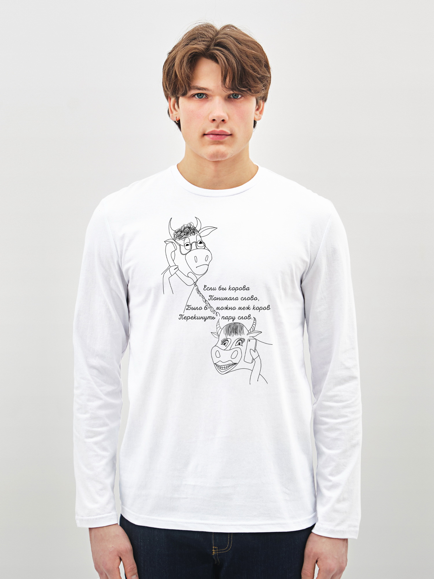Лонгслив с принтом "Если бы корова понимала слово"